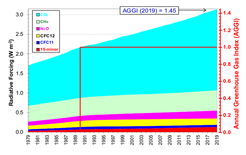 L’AGGI, Annual Greenhouse Gas Index, est une mesure de l’influence du réchauffement climatique des GES et de la façon dont cette influence a changé depuis le début de la révolution industrielle.