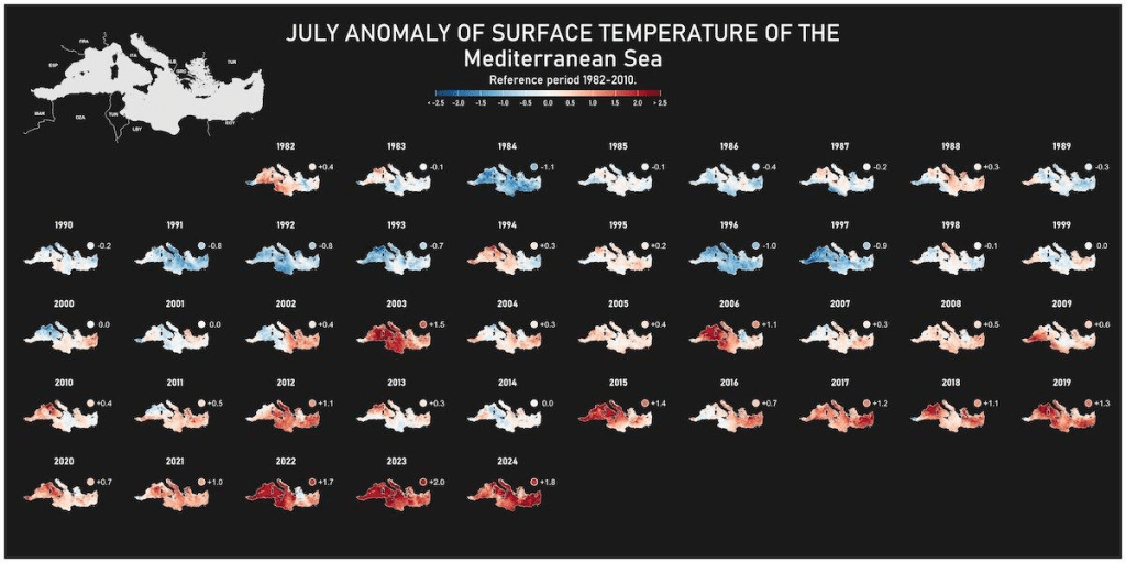 Lors d’une journée moyenne en 2023, près d’un tiers de l’ensemble des océans dans le monde étaient sous l’emprise d’une vague de chaleur marine, ce qui nuit aux écosystèmes et aux systèmes alimentaires vitaux. À la fin de 2023, plus de 90 % des océans de la planète avaient connu des vagues de chaleur à un moment ou à un autre de l’année.