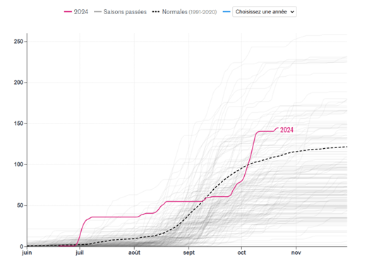 Selon le bilan de Météo-France, 2024, marquée par de nombreuses inondations, figurera parmi les dix années les plus pluvieuses et l’une des cinq plus chaudes jamais enregistrées.